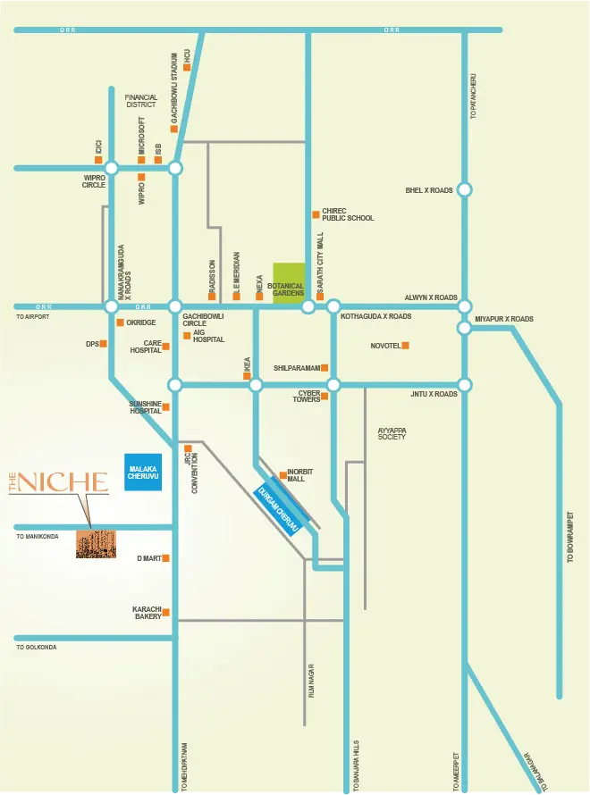 Our amenities are second to none. And when it comes to location, the gated Community is strategically located in Shaikpet, keeping you close to everything you need, right from workplaces to healthcare facilities. Spread across 2 acres of land, with 60% open spaces and excellent ventilation. You’ll enjoy easy access to major commercial and entertainment hubs, making it simple to get where you need to go.